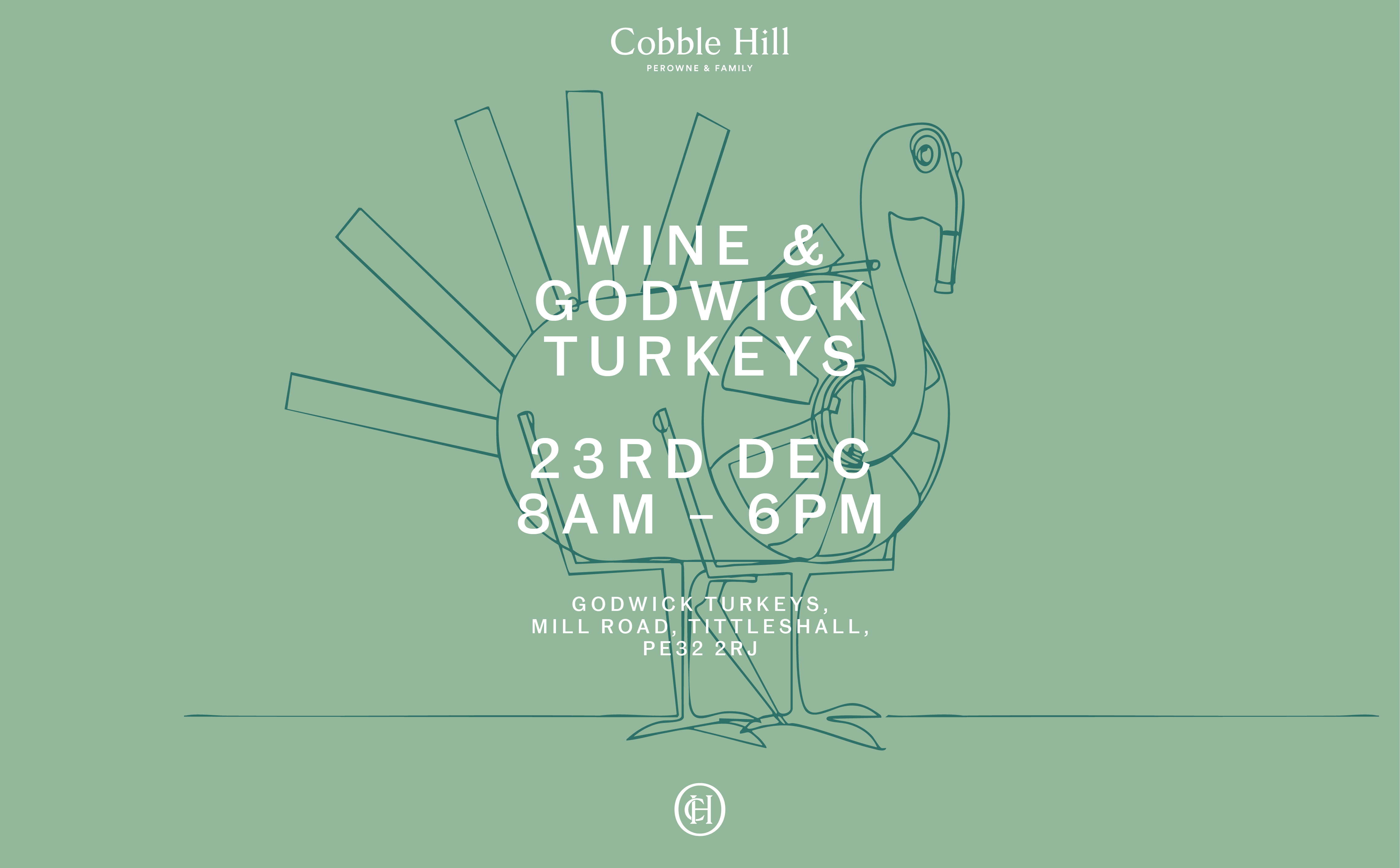 Pick up your pre-ordered Turkey at Godwick farms and either stay for a glass to kick start the Christmas celebrations or bring a bottle home with you!