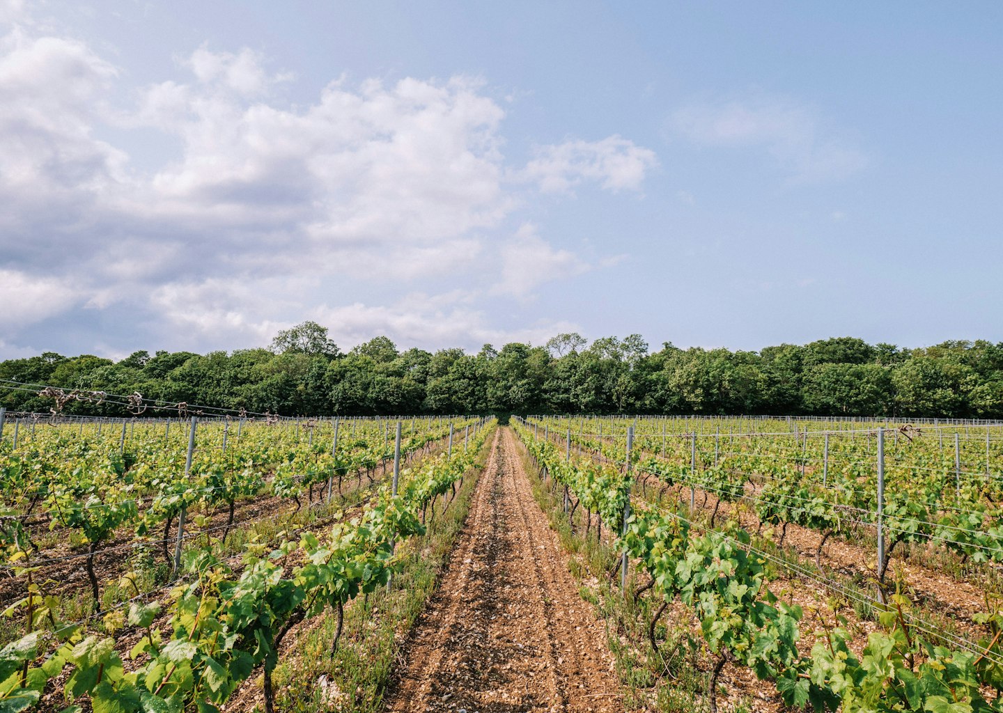 In 2016, he planted not just that one vine, but 17 rows of them, on a ten-acre south-facing, chalk-laden piece of land he’d purchased almost 20 years earlier. He had noticed how, because of the constant flow of coastal air, the soil here, dotted with heat-reflecting stones, was never impacted by spring frost (a constant bugbear for many English wineries).